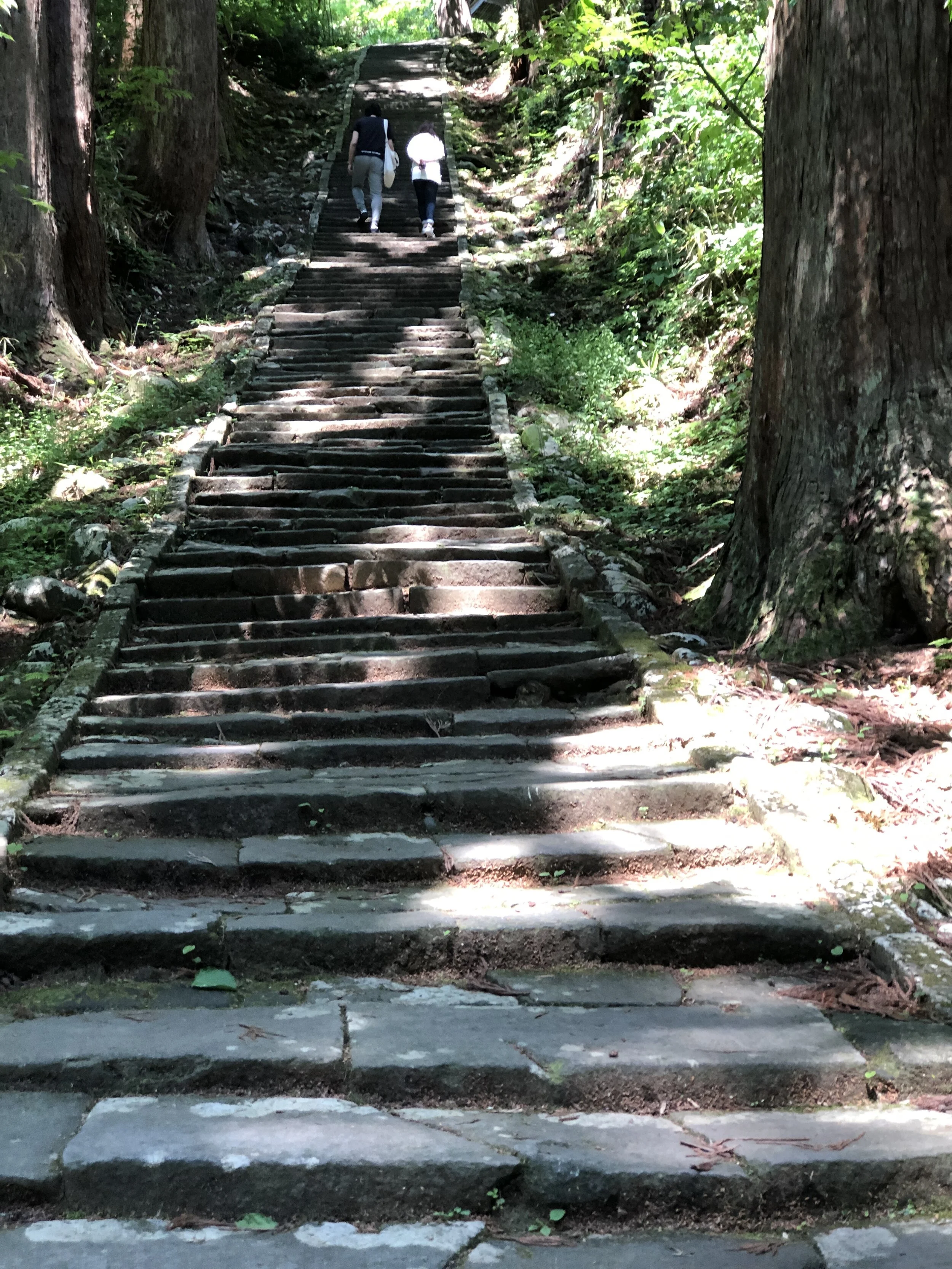 Mount Haguro is located between Akita and Yamagata and is one of three mountains that make up “Dewa Sanzan,” or “three mountains of Dewa.” Mount Haguro is the easiest of the three mountains to climb. For this hike, there are 2,446 stone steps all the way to the top and the they get very steep. I will admit, it was quite hard at times and I had to stop for multiple breaks. I drank enough water to sink a ship and have concluded that stairs are the bane of my existence. Regardless, I had a great time and saw some amazing things.
